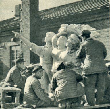 前日本陆军兵长国友俊太郎拍摄的图片:雕塑“工农兵的群像”来迎接今年“五一”国际劳动节。