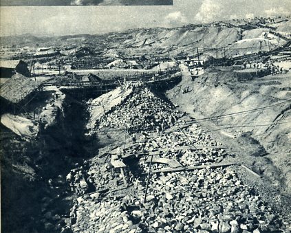 辽宁省浑河的中游正修筑大伙房水库。大伙房水库是我国机械化施工程度最高的水利工程。目前5万劳动大军在不分昼夜地施工,输送带、推土机和运料火车一直轰鸣不停。预计明年水库就可以建成。