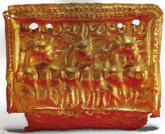 三鹿形金牌饰。长8.5厘米,宽7厘米。保安寺古墓出土。