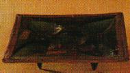 (辽)银扣琉璃盘。高2厘米,长、宽9.9厘米。叶茂台7号墓出土。