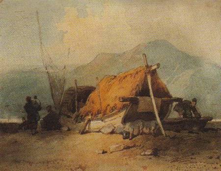 水彩《澳门的一家船民》George Chinnery (14.6x20厘米)19世纪早中期