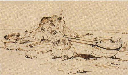 速写《澳门的一家船民》George Chinnery (9x16.5厘米)19世纪早中期