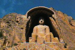 固原须弥山石窟的露身佛像,高二十公尺,是公元七世唐代的古迹。