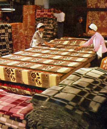 银川毛纺厂生产的各式毛毯。