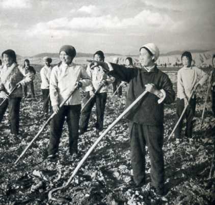 回族女干部马金花是固原县马莲大队党支部书记,被选为中共中央候补委员。图为她在同社员一起劳动。