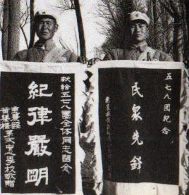 在进军大西北、解放宁夏过程中,人民解放军全体指战员发扬我军光荣传统,严格执行《三大纪律八项注意》。图为惠农县黄渠桥镇人民群众赠送65军193师578团的两面锦旗。