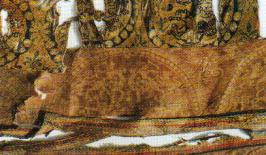 黄地花瓣团窠鹰纹锦