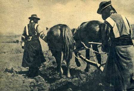 村民高兴地替军属李承统代耕,李承统准备了茶水,感谢村民对他的帮助。