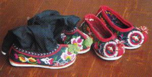 土族男子服饰。土族男子传统服饰为内穿绣花高领白色短褂,外套黑色或紫色斜襟无袖长袍,腰间系精美绣花腰带,带端垂吊在前,俗称“前搭子”。脚穿白布袜、蒙式皮靴,头戴圆顶翘檐毡帽。