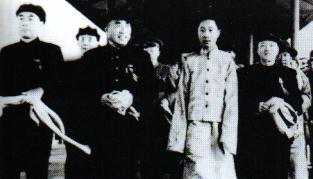 西藏地方政府代表团和班禅额尔德尼一行于1951年4月抵达北京,谈判西藏解放问题。图为周恩来、朱德、李济深等陪同班禅(左三)步出北京车站月台。