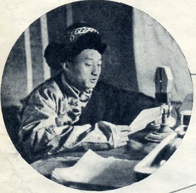 海南藏族自治州牧区建立了第一个有线广播站,用汉、藏两种语言广播。这是藏族广播员才项在用藏语广播新闻。(1957年)