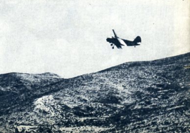青海省用安2型飞机满载桦、云杉等树种在积雪的荒山上撒种造林。