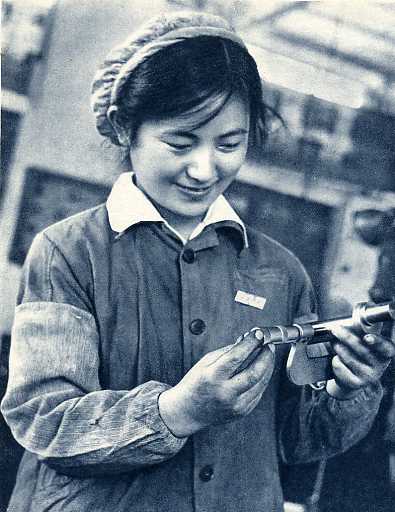 精密仪器与机械系、电机工程系、自动控制系师生和生产部门合作试制的一种自动化机床在试加工工业产品。