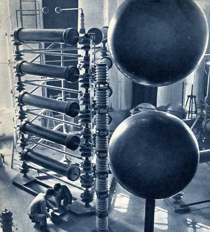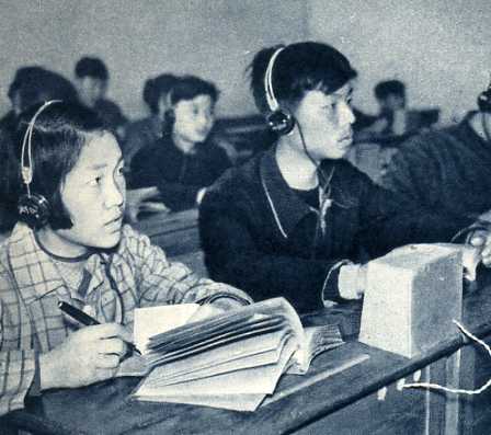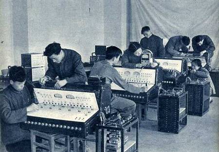 电机工程系学生运用学校自制200周波交流计算台进行华北电力系统运行方案计算。