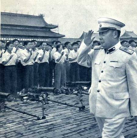 1960年6月,我校学生民兵参加首都民兵大示威,反对美帝侵略,坚决解放台湾。这是国务院副总理陈毅元帅检阅我校民兵队伍。