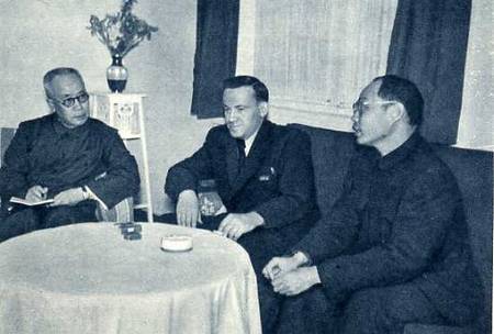 蒋南翔校长、刘仙洲第一副校长和1952年来校工作的苏联专家组组长萨多维研究工作。
