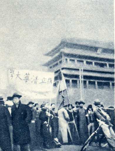 1935年“一二?一六”大示威。这是进城游行的清华学生队伍。