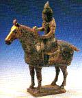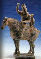 彩绘骑马带犬俑—(唐)高30.5厘米、32.5厘米;1960年永泰公主墓出土。