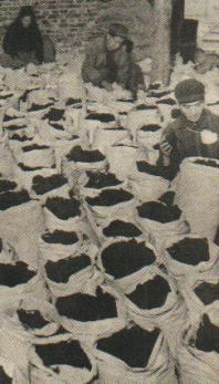 石泉植物鞣料厂是1951年在资本家的破烂摊子上重新建立起来的。解放前,最高年产量才40吨。解放后,重建厂的头一年就生产了鞣料83吨。图为包装车间的工人,正在积极包装准备外运。(1960年)