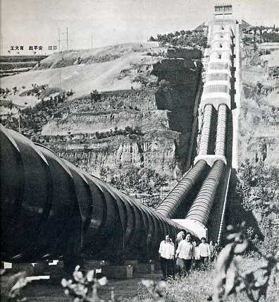 位于扶风县的一座倒虹工程,钢管内径二米九,全长八百八十米。