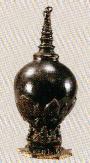 (唐)黑釉塔式罐。高51.5厘米。1972年铜川黄堡镇耀州窑址出土。以黑瓷作成塔式,这是首次发现。