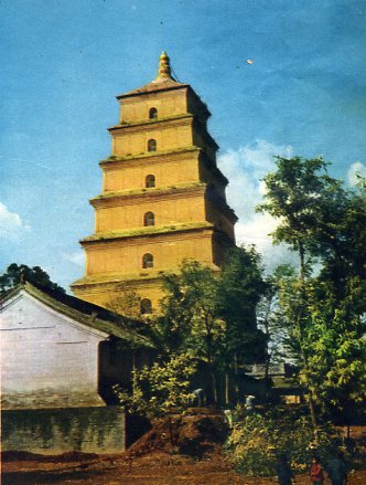 西安南郊大雁塔。公元652年唐代高僧玄奘建造,贮藏由印度取回的佛经、佛像。