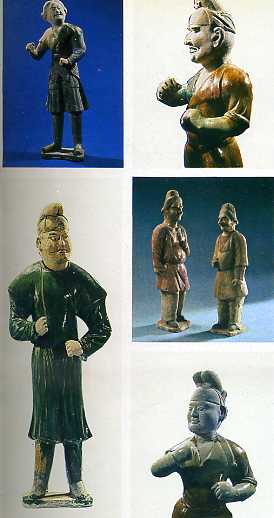 西安及其附近出土的三彩俑和彩绘陶俑,人物容貌不同、肤色不同、服饰不同,塑造了丝绸之路上的我国西北兄弟民族以及中亚、西亚、北亚、南亚等地各族人的形象。