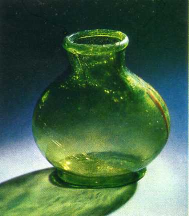 中国制造玻璃的技术可能来自中东,在公元六、七世纪已达到很高的水平。图为西安出土的隋代(公元五八一——六一八年)玻璃瓶。