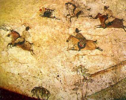马球又名波罗球,唐代从波期传入中国,在封建贵族中盛行一时。这是唐章怀太子墓壁画中的“打马球图”。