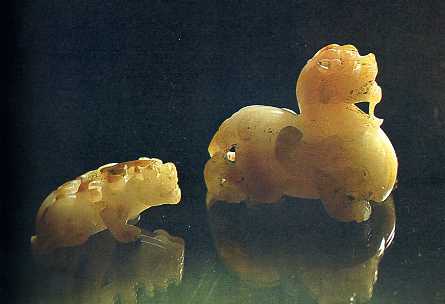 自汉至唐(公元前二世纪至公元二世纪初),我国的手工艺品具有相当的水平,有的远销到中亚、西亚、南亚、北非各地。图为西汉玉辟邪。