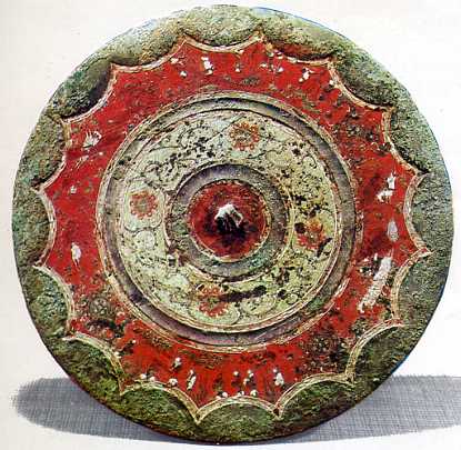 西汉彩绘铜镜。