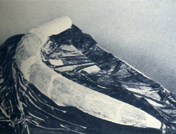 陕西乾县周成府村附近修筑土坝时,在距地表10米深的土层中发现了一批象牙化石,可能是百万年前的猛犸象在死后被洪水冲到这里了。这是其中的象牙,长2.8米。(1959年)