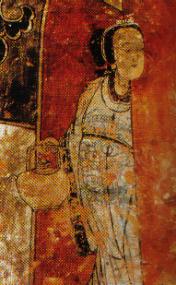 蜈蜙洞辽金墓室壁画《提卤妇女》(局部)