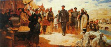 1935年10月19日,红军陕甘支队到达保安县吴旗镇。图为长征抵达陕北的红一方面军。