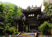 - 在成都市文殊院街。占地82亩,殿堂房舍190余间。始建于南朝。明代毁于兵燹。清康熙二十年(1681年)重建,改名文殊院。殿宇系木石结构,采用四川峡石为柱,朴实壮观。诸佛殿镂空花窗,式样繁多,图案精巧。寺内现存大小铜佛像100余尊,为清代名匠所铸。还藏有北宋丝绣金刚经、南宋木板印的《续高僧传》、元代泥银写本金刚经及贝叶经等珍贵文物。说法堂内宋代铸造护戒神铁像10尊,风貌古特,具有北齐风格。