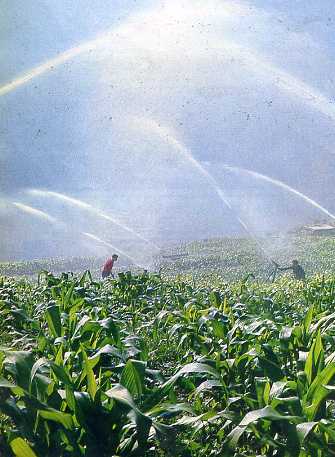 喷灌农田。