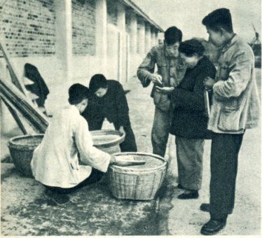 黄妈妈常去访问选民,了解选区各方面的情况。这是她在检查中江县龙台区粮食保管工作。