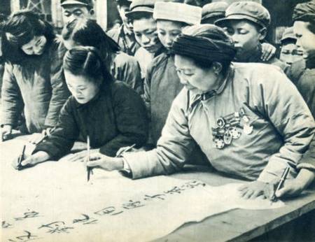 朝鲜人民访华代表团的团员来到四川慰问英雄的母亲黄妈妈。