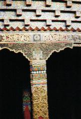 土木寺殿内柱饰。土木寺位于大盖乡,为藏传佛教宁玛派寺院。