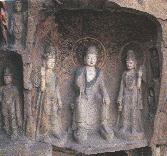 千佛崖第32窟造像。此窟造像保存完好,造型优美,是这里唐窟中的上乘之作。