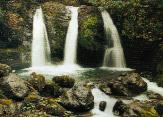 马鞍山川字形瀑布。从黑竹沟逆流上至海拔1911米,瀑布高达20米。