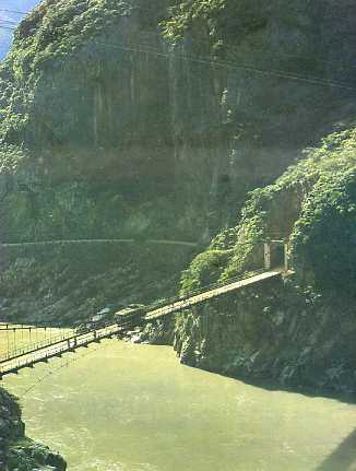 解放前交通不便的里庄区麻哈渡口,现在已建起公路缆桥。