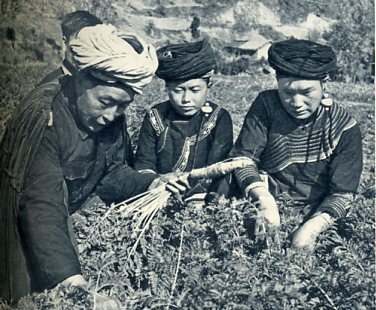 电影《达吉和她的父亲》中的一个镜头:达吉(中)和她的汉族生父(前左)、彝族义父(右)团聚在一起。这部电影是参照真实的故事创作的。下面介绍的便是真实的达吉和她的父亲。