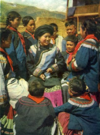 解放前整个凉山彝族地区只有一个小学,根本没有中学,现在自治州有了5所中等学校和120所小学。为了迅速提高彝族人民的文化水平,全部学生都享受助学金或公费的待遇。这是昭觉民族师范学校。