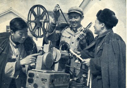 各县都有了电影放映队,这是彝族放映员曲木立古尼(左)、鲁直格(中)和吉克。