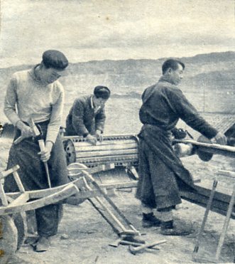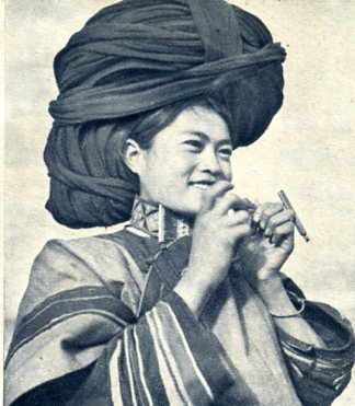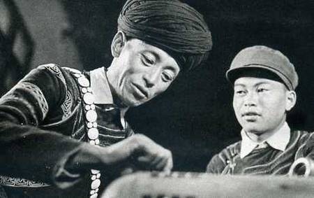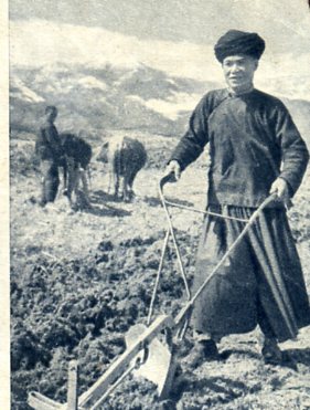 彝族农民在在制造农具。解放前,彝族农业还处在刀耕火种的原始阶段。