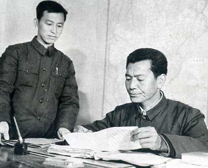 深沟公社党委书记丰木支(右)和尔思大队支部书记沙马木日。