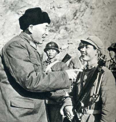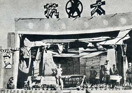抗日战争时期,罗瑞卿副校长(右)陪同毛泽东主席出席中国人民抗日军政大学的一次集会。