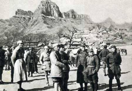 一九四0年春天,朱德(右四)、刘伯承(右三)、邓小平(右二)、聂荣臻(右五)、罗瑞卿(左一)等同志在山西省东南部的太行山区。