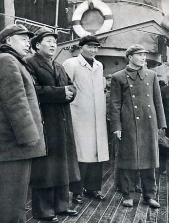 一九五三年,公安部长罗瑞卿陪同毛泽东主席视察南昌舰。左一为陈毅同志,右一为张爱萍同志。